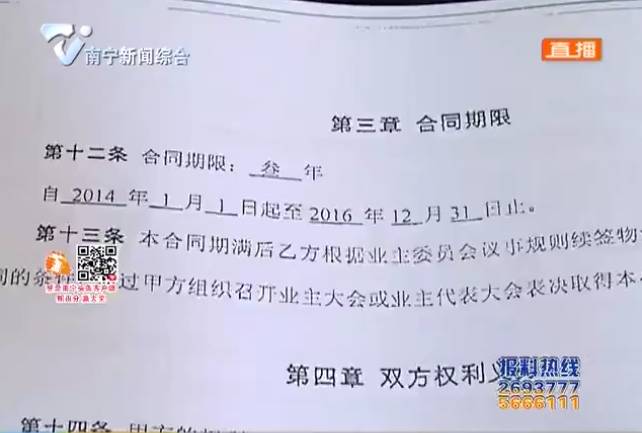 而宁铁馨苑小区与深圳市北方物业管理有限公司南宁分公司(以下简称北方物业公司)签订的物业合同服务期限在2016年12月31日就已经终止了,业委会相关负责人表示,早在合同结束前,他们就和物业说明了,合同到期后不再续签。