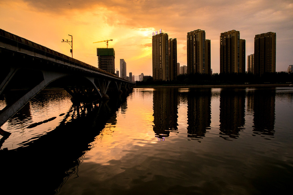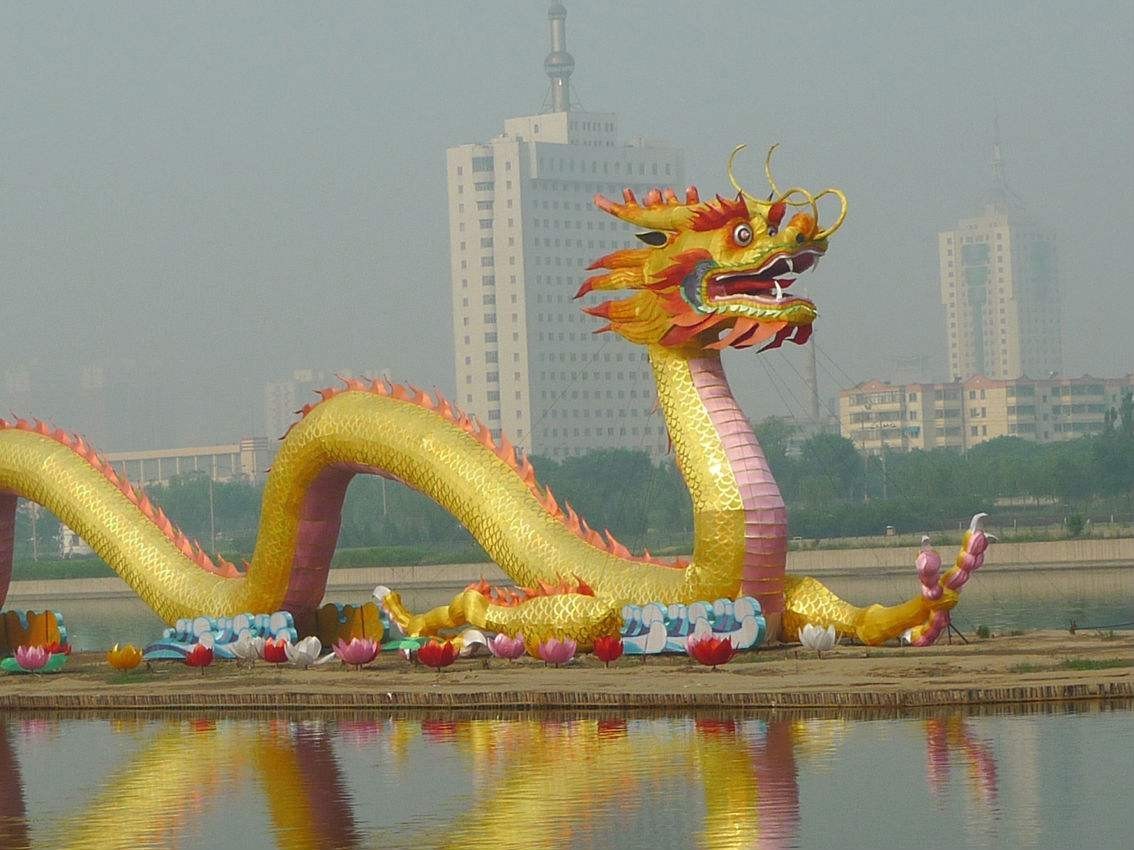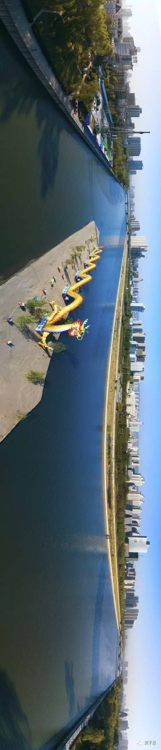龙“游”汾河——太原有着悠久的历史,巨龙横卧在美丽的汾河中央,金灿灿的,给大家带去吉祥。