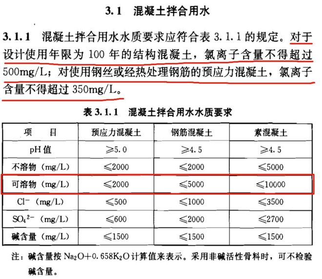 国家标准对混凝土用水氯离子有哪些要求?依据《JGJ 63-2006 混凝土用水标准》,不同类型的混凝土对氯离子限值有明确规定:★预应力混凝土 氯离子≤500 mg/L★钢筋混凝土 氯离子≤1000 mg/L★素混凝土 氯离子≤3500 mg/L★100年耐久性混凝土 氯离子≤500 mg/L★采用钢丝或热处理钢筋的预应力混凝土 氯离子≤350 mg/L